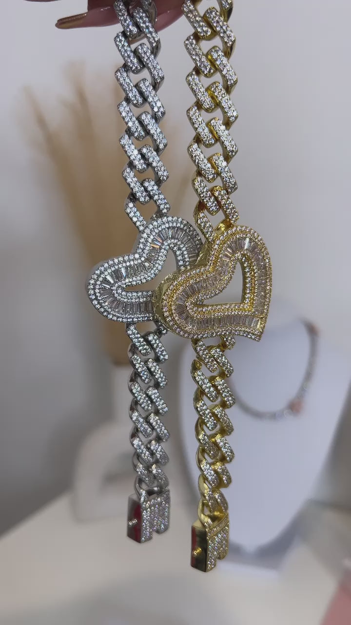 Baguette Heart Miami Cuban Bracelet